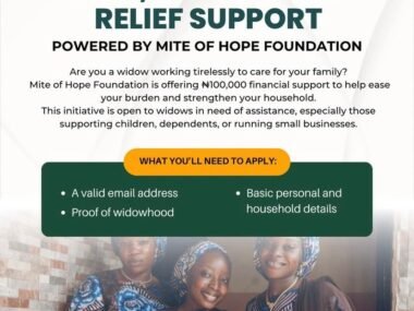 Read More Accelerator Grant Call for Applications: Widows Relief Support by Mite of Hope Foundation( ₦100,000 Grant)ByADMINDecember 18, 2025No comments Call for Applications: Widows Relief Support by Mite of Hope Foundation( ₦100,000 Grant) Applications are now open for… Read More